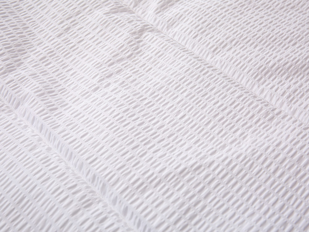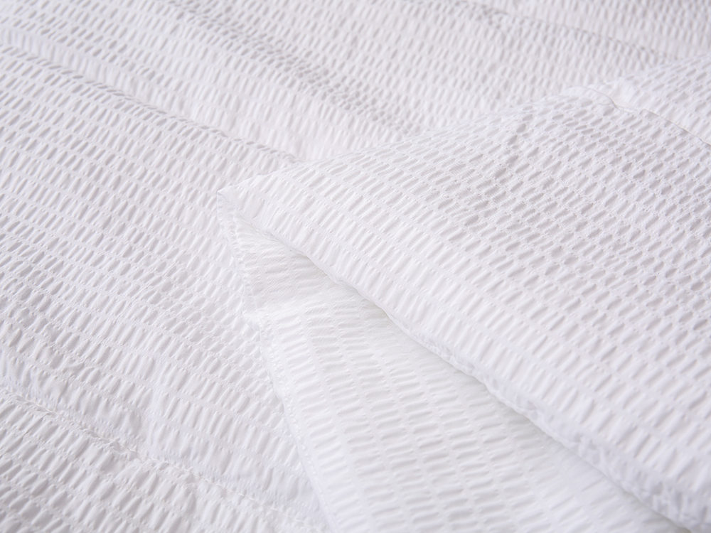 Fronten og baksiden av hele dynen er laget av høykvalitets Seersucker-stoff, som er en stil som mange kunder liker. Den samlede effekten er 3D. Det er en veldig populær stil i markedet i år og er veldig populær blant unge mennesker.