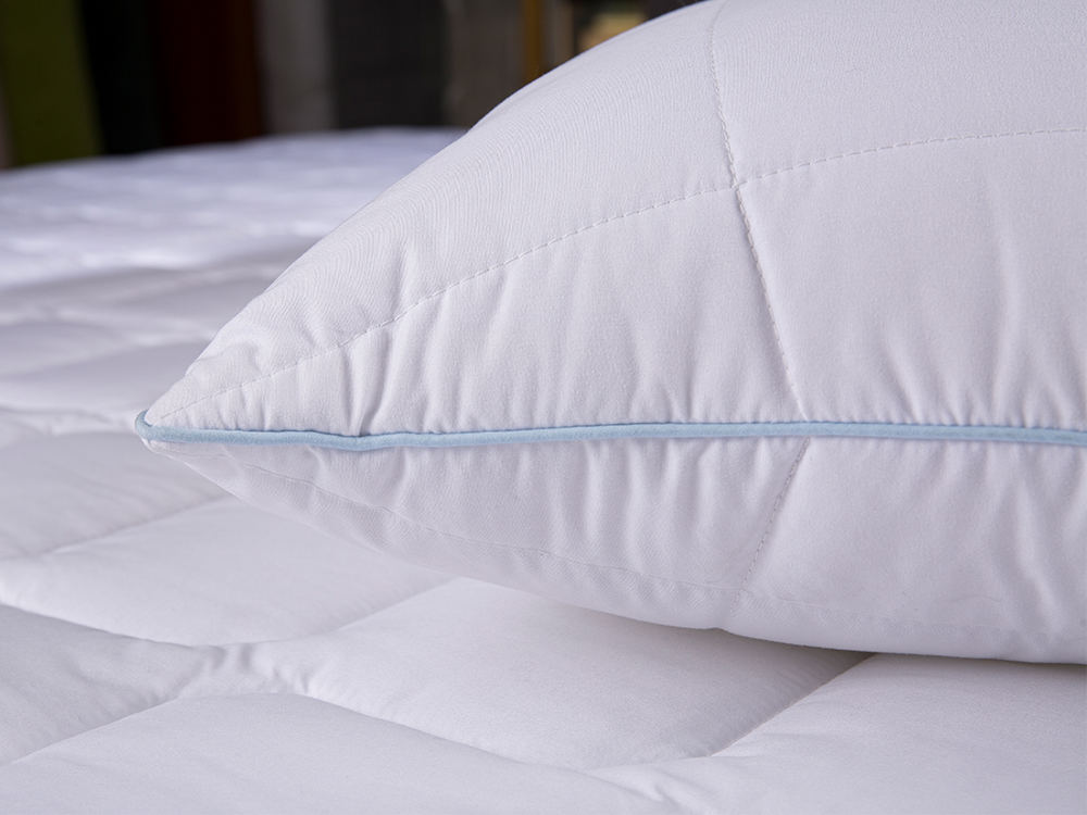 Det vakre vatterte mønsteret med lyseblå piping forbedrer den generelle skjønnheten i denne puten. Enten du er en sidesøvn, ryggløper eller mages sovende, kan denne puten prøves.